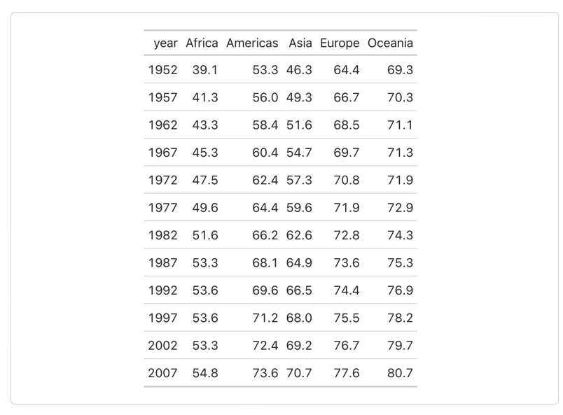 Pages, Rows, Columns, and Tabsets — Pages, rows and columns are defined using markdown headings (with optional attributes to control height, width, etc.). Tabsets can be used to further divide content within a row or column.