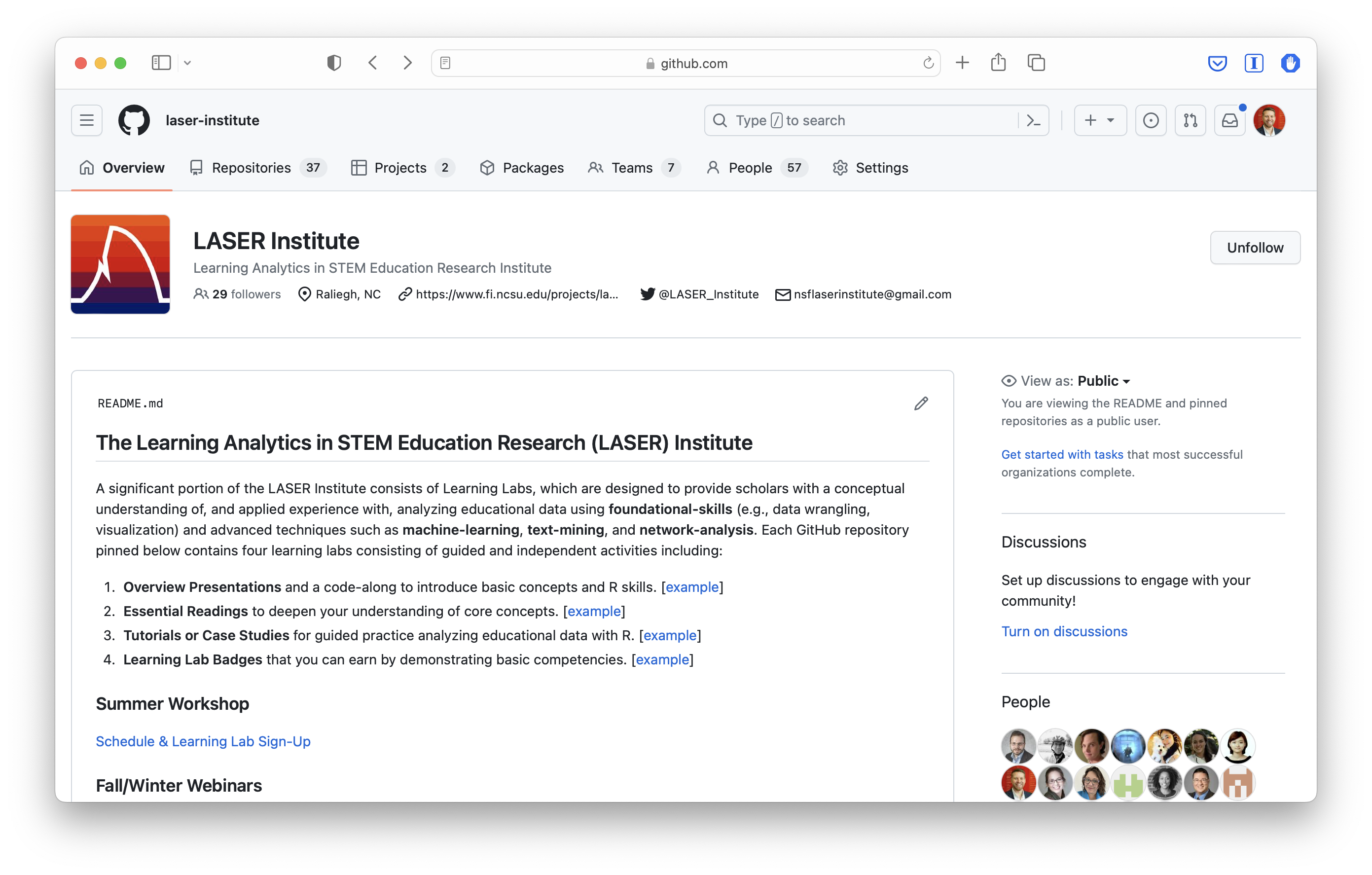 The LASER Institute GitHub site houses repositories for all curriculum materials and GitHub Pages is used to publish our site to the web.