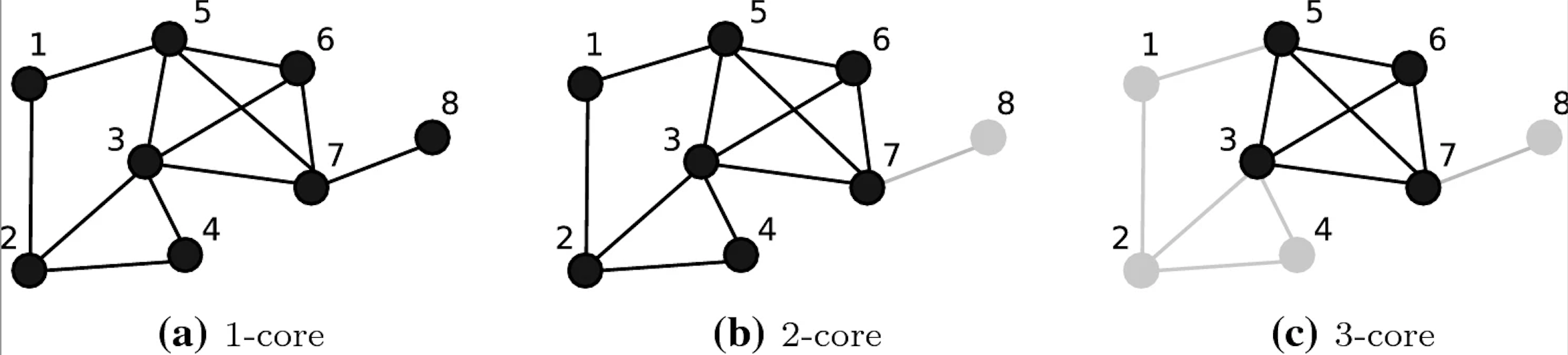 A K-core is a substructure (a subgraph) of the network in which each node within the K-core is connected to at least K other nodes. Therefore, a 2K-core would be a subset of actors in which a node is connected to two others.